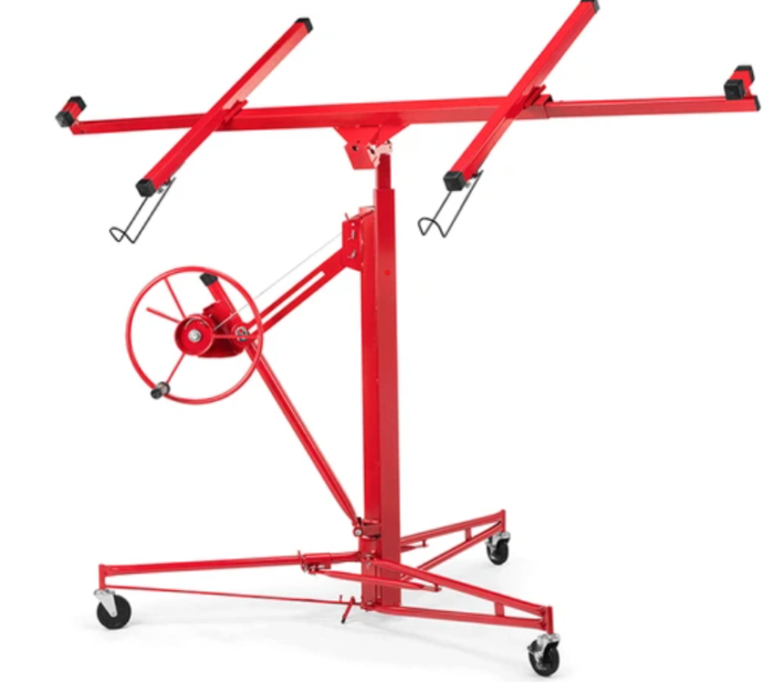✅ Winch with handle and braking mechanism for safe drywall positioning